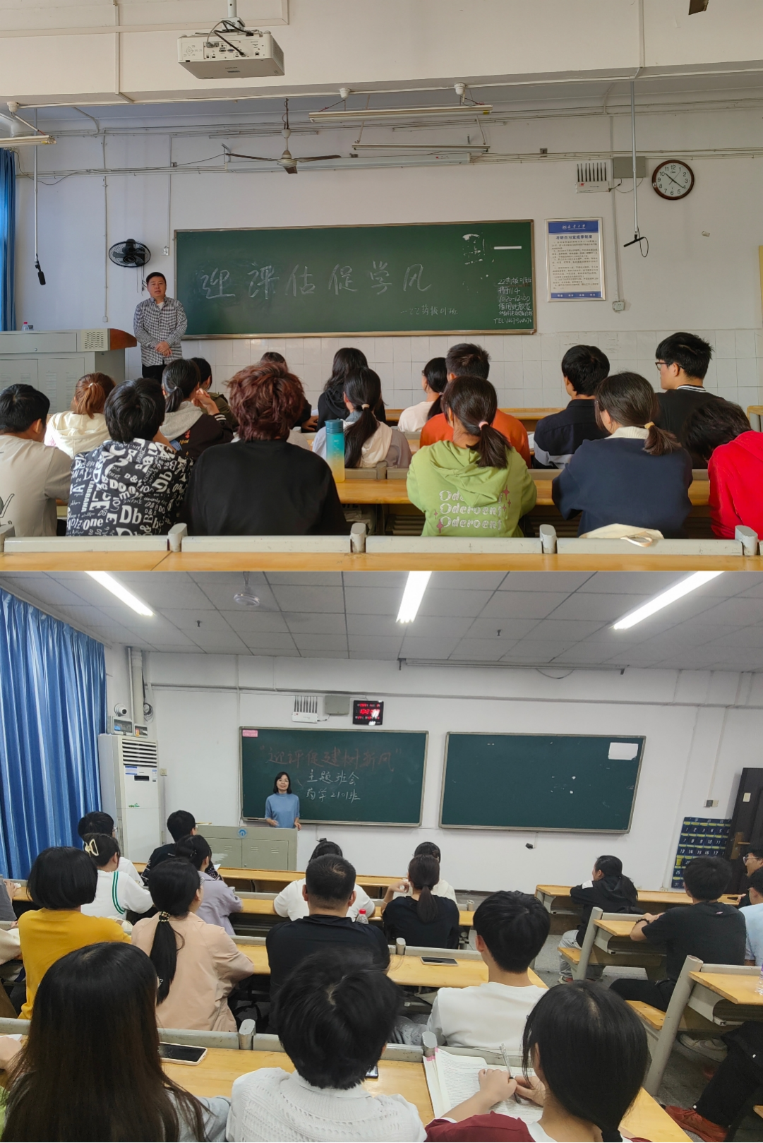 此次主题班会由院领导牵头,各年级辅导员及班主任深入各班组织班会宣讲。宣讲内容包括:迎评促建知识学习、学生手册学习、校园电动车安全教育、学生宿舍安全教育等。